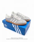 Adidas Originals Samba Og Shoes Classic sneakers, white sneakers, T-toe shoes for men and women. These stylish classics exude a casual, modern vibe with a slivered upper. Born on the football fields of the 1950s, then finding their way to the streets and runways, the Adidas Samba has established a unique style and become a fashion icon. This classic Samba Og features a soft leather upper and a rubber outsole for comfort and a relaxed fit. The serrated three stripes and distinctive T-toe toe pay homage to the Samba's heritage. Subtle gold foil details add a touch of style. Staying true to our roots, our passion never fades. Regular fit, lace-up design, leather upper, textile lining, rubber outsole.