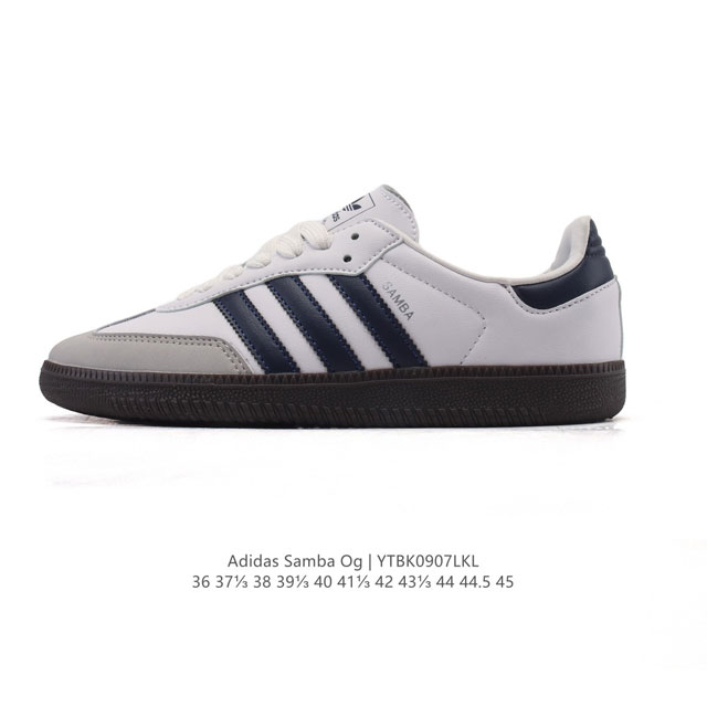 Adidas Originals Samba Og Shoes Classic sneakers, white sneakers, T-toe shoes for men and women, a stylish classic shoe that embodies a casual, modern style. Born on the football fields of the 1950s, it later made its way to the streets and runways. The Adidas Samba is a style icon in its own right. This classic Samba Og shoe features a soft leather upper and a rubber outsole for comfort and a casual look. The serrated three stripes and distinctive T-toe toe pay tribute to the Samba's traditional design. Understated gold foil details add a touch of style. Staying true to our roots, our passion never fades. Regular fit, lace-up design, leather upper, textile lining, rubber outsole.