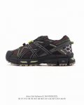 Asics Gel-Kahana 8 men's and women's trail running shoes, featuring grip, stability, cushioning, and durability. The Gel-Kahana series is a practical trail running shoe, blending performance with outdoor style. Its core Gel technology, integrated into the heel, works with the Speva elastic midsole to reduce impact force on the foot upon landing. The Dynamic Duomax dual-density anti-tilt device and midfoot reinforcements on the medial midsole, along with geometric heel construction, provide comprehensive support and protection. The Ahar durable rubber outsole features a grooved design for enhanced traction. Sole Material: Rubber. Closure Type: Lace-up. Shaft Height: Low-Top. Fabric Type: Synthetic mesh. Rearfoot Gel cushioning system: Reduces impact shock and provides a smooth transition. Trusstic system: Reduces weight while maintaining structural integrity. Trail outsole: Inverted lugs provide traction both uphill and downhill on a variety of terrains.