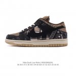 Authentic Nike Travis Scott x SB Dunk Low Paisley Floral Stylish Retro Skateboard Shoes and Casual Sneakers. Following the Air Jordan 1 and Air Jordan 11, Travis Scott and Nike have collaborated on another new shoe. This shoe also features a patchwork design, but is made of a more textured denim.