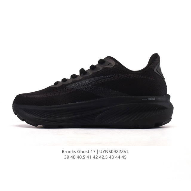 New, corporate-grade Brooks Ghost 17. A classic, thick-soled, elevated athletic dad shoe with a maxi cushion. Equipped with a Dna Loft V3 nitrogen supercritical foam midsole, it boasts a 26mm forefoot and 36mm heel, along with a 10mm slope for a soft and bouncy balance. Nitrogen injection creates a closed airbag structure, improving cushioning by 30% and energy return by 10% compared to the previous generation. Tests show that the shoe absorbs 68% of the impact force of an 80kg runner's heel strike, while rebound speed during forefoot extension is increased by 15%. Made from a double-layer jacquard engineered mesh, the outer layer features high-density breathable mesh for rapid perspiration removal, while the inner layer features an elastic support frame for enhanced support. A 5mm wider forefoot and a thickened memory foam tongue ensure a seamless fit for runners with wide feet . The 3D molded foam in the heel and the TPU stabilizer form a double locking structure, which provides reliable stability under complex road conditions. It is suitable for a jogging pace of 5:30-6:30 km, taking into account both cushioning and propulsion needs. The outsole contains 30% recycled polyester fiber, and the upper is made of bio-based materials. Standard and wide last versions are available to meet the needs of different foot shapes. It features "all-round cushioning" characteristics and is suitable for daily training and long-distance jogging.