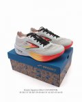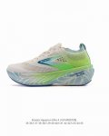 New product, company-exclusive, the Brooks Hyperion Elite 4 PB carbon plate running shoe. This dad-style running shoe features a thick sole and increased cushioning. The Brooks Hyperion Elite 4 utilizes precision-woven, high-density jacquard mesh technology, using a zoned weaving process to achieve dynamic wrapping. Different yarn densities create a support structure in key areas like the instep and arch, ensuring lockdown while maintaining extreme breathability. The upper's stretchability allows the narrow-last shoe to accommodate average feet, while the velvet heel material eliminates rubbing. The Hyperion Elite 4 features a new Dna Gold nitrogen foam midsole. This 100% PEBA material significantly improves energy return while reducing weight by 11%. The midsole offers a dual-featured feel of "soft for jogging, firm for acceleration," providing a noticeable forefoot bounce during long workouts and responsive ground contact during intervals. In addition, the sole adopts Rapidroll Rocker wave-shaped midsole structure, combined with 8mm slope difference design, effectively reducing energy loss during the gait cycle.