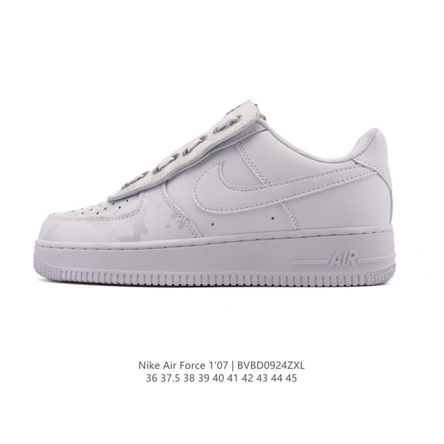 Nike Air Force 1 '07 Low, a versatile, low-top, cushioned white sneaker with a thick sole and elevated, casual athletic sneaker. Its soft, springy cushioning and exceptional midsole design, combined with its retro and modern aesthetic, have made the Force 1 a global favorite for over three decades and remain a favorite today.