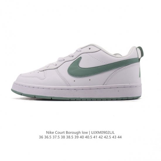 Nike Court Borough Low, a low-top sneaker for men and women. 1. Its leather upper combined with a mesh tongue provides a superior look and feel while providing stable support and enhanced breathability. The elastic insole is durable, comfortable, and provides increased shock absorption. 2. The Nike Court is also one of Nike's most cost-effective shoes. The Court shoe shape is very similar to the Aj1 Low, and the sole is very similar to the Af1. Of course, there are still differences. After all, the product materials and positioning are different. However, it is still a good choice for cost-effectiveness. 3. This shoe has a torsion point design on the outsole, which allows for smooth starting and stopping and flexible grip. The Nike logo is on the shoe body, showcasing the brand value.