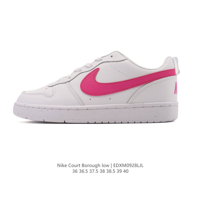 Nike Women's Court Borough Low Low-Top Sneakers. 1. Its leather upper combined with a mesh tongue provides outstanding appearance and texture while providing stable support and improved breathability. The elastic insole is durable, comfortable, and increases shock absorption. 2. Nike Court is also a relatively cost-effective shoe from Nike. The Court shoe shape is very similar to the Aj1Low, and the sole is very similar to the Af1. Of course, there are still differences. After all, the product materials and positioning are different. In terms of cost-effectiveness, it is still a good choice. 3. This shoe has a torsion point design on the outsole, which allows for smooth starting and stopping and flexible grip; the shoe body has the Nike logo, showing the brand value.