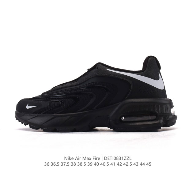 Nike's new 2025 Air Max Fire casual shoes, versatile, thick-soled, elevated dad running shoes. If262 02. Stylish and supportive, this is a popular Air Max model. The synthetic and textile upper provides exceptional durability and structure, while the Air Max cushioning in the heel creates a comfortable, cushioned experience. The Air Max cushioning provides comfortable rebound and optimal support, while the rubber outsole provides excellent durability and traction. The synthetic and textile upper, foam midsole, and rubber outsole allude to the Air Max Plus' design. The segmented sole echoes the Air Max Plus, while the wavy side stripes pay homage to the classic Tailwind series. The cleverly placed reverse Swoosh on the heel adds a unique touch and adds to the shoe's buzz.