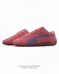 PUMA Speedcat Og. This low-top, German-inspired racing shoe from the PUMA Speed Racing series features a retro, versatile, and casual athletic style. This shoe is inspired by the fire-resistant racing shoes worn by racers in the 1980s and 1990s. Its lines mimic the streamlined silhouette of a race car, embodying aerodynamic principles. Its simple, sleek design seamlessly blends with the Formstrip logo throughout, creating a visually rich and harmonious look. The return of the Speedcat Og naturally retains its narrow silhouette and thin sole. While other brands have been increasingly adopting thicker soles in recent years, the Speedcat bucks the trend, offering a nearly soleless feel for a refreshing visual experience. The upper remains constructed of soft, breathable leather, and the extensive, almost fully enclosed construction enhances its retro aesthetic. The colorway also brings back the original black and red, paying homage to the iconic F1 team uniforms. I believe it's the striking red color that immediately catches your eye. It instantly brightens up your look and makes you stand out in the sneaker-centric Ootd market. The black color, on the other hand, is a low-key all-purpose option, showcasing a trendy personality without overwhelming the crowd, making it a great choice for those who love minimalist styles.