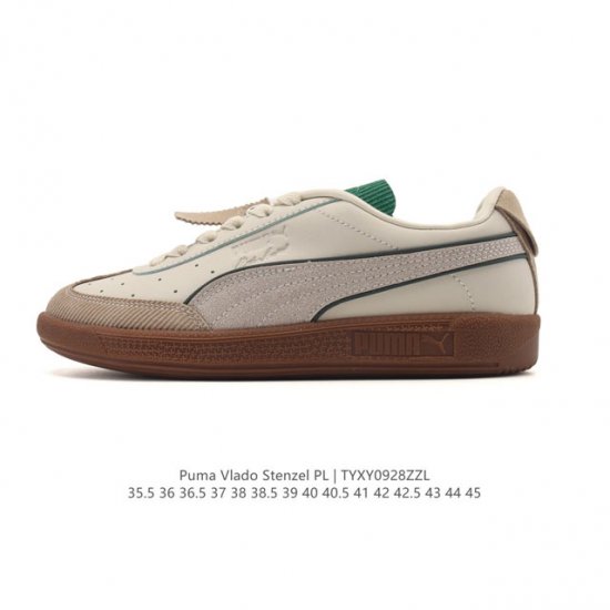 PUMA Vlado Stenzel pl low-top, non-slip, wear-resistant sneakers in white and green. Stylish and stylish, the sole is made of durable materials, and the meticulous workmanship highlights the brand's appeal. The toe box's anti-collision design reduces toe scrapes and collisions, protecting every step.