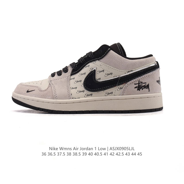 Special Offer: Nike Air Jordan 1 Low Aj1, a retro, casual basketball shoe. This shoe draws design inspiration from the original 1985 model, reimagining a simple, classic look that feels familiar yet innovative. Stitching details and an embroidered Wings logo on the heel highlight the distinctive Jordan brand style. The leather upper provides exceptional structure and durability. Nike Air cushioning technology is incorporated into the sole for a lightweight, cushioned feel, while rubber is incorporated into the outsole for exceptional traction, making it an ideal everyday choice. The heel features the Wings logo, a perforated toe box, and a foam midsole.