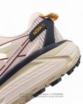 The Hoka One One Mafate Speed 2 Low, a lightweight, low-top outdoor trail running shoe designed for mountain climbing and off-roading. The upper features a lightweight, seamless construction, with wide, elastic laces that stay put. Thin, TPU-bonded laces are attached to the breathable upper. The silhouette is inspired by the Alpine mountains, with bright blue tones overlaid on the shoe. The forefoot and midfoot are widened, and the rubber outsole and EVA cushioning utilize Rolling Balance technology to guide the runner's natural gait.
