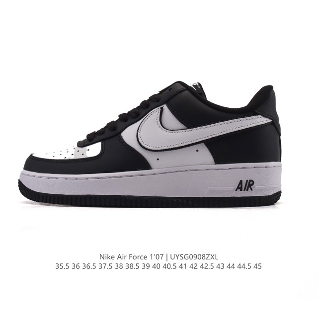 Top-grain leather Nike Air Force 1 '07 Low, a versatile, low-top, thick-soled, height-enhancing casual sneaker with air cushioning. Its soft, resilient cushioning and exceptional midsole design, combined with a retro and modern aesthetic, have made the Force 1 a global favorite for over three decades, and it remains a beloved shoe today.