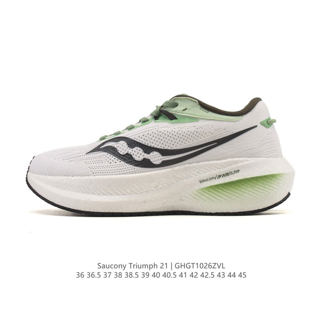 Saucony Triumph 21 Unisex Running Shoes, High-Cushioning, Lightweight, Thick, Height-Increasing, Breathable, Dad Shoes. Saucony is a professional running shoe brand from the United States, founded in 1898. Saucony's product line is divided into two main categories: professional sports series and retro casual series, providing professional, comfortable, and safe running products for professional runners and running enthusiasts. This Triumph 21 running shoe is positioned as a flagship cushioned running shoe. Its performance has been upgraded compared to previous generations: the upper uses a newly upgraded ergonomic mesh design, conforming to the foot for better breathability. The midsole uses the latest Pwrrun+ material, combined with a Pwrrun+ insole, significantly thickening the midsole, and a 10mm incline further enhances cushioning and rebound performance. The insole uses the Formfit dynamic adaptation system, dynamically conforming to the foot shape, improving support and comfort, and providing a superior dynamic feedback experience. The XT-900 rubber outsole provides good grip and strong abrasion resistance. Product Code: S10881-31 Sizes: 36-45 (including half sizes) Code: Ghgt1026Zvl