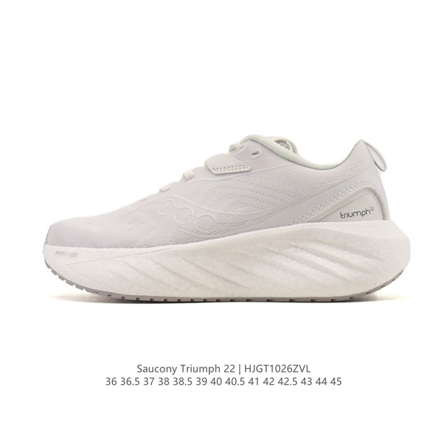 Saucony Triumph 22 Unisex Running Shoes with Strong Cushioning, Lightweight, Suitable for Men and Women, Breathable for Summer Sports. Saucony is a professional running shoe brand from the United States, founded in 1898. Saucony's product line is divided into two main categories: professional sports series and retro casual series, providing professional, comfortable, and safe running products for professional runners and running enthusiasts. This Triumph 22 running shoe is positioned as a flagship cushioned running shoe. Its performance has been upgraded compared to previous generations: the upper uses a newly upgraded ergonomic mesh design, conforming to the foot for better breathability. The midsole uses the latest Pwrrun+ material, combined with a Pwrrun+ insole, significantly thickening the midsole, and providing further cushioning and rebound performance with a 10mm incline difference. The insole uses the Formfit dynamic adaptation system, dynamically conforming to the foot shape, improving support and comfort, and providing a superior dynamic feedback experience. The XT-900 rubber outsole provides good grip and strong abrasion resistance. Product Code: S10759-203 Sizes: 36-45 (including half sizes) Code: Hjgt1026Zvl