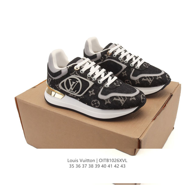 Special Price Original Price [Price not specified] Company Grade Louis Vuitton Lv Neo Run Away Men's and Women's Casual Sneakers. These are Louis Vuitton round-toe lace-up low-top casual shoes, reminiscent of the classic "Forrest Gump" style. Materials: Monogram denim and calfskin patchwork, with some sections featuring two-tone calfskin, echoing the seasonal leather goods collection. Iconic elements: Large Lv Circle or Lv Initials logo on the side. Louis Vuitton logo engraved on the lace clips and eyelets, gold-engraved heel counter. Wedge outsole with hidden insole, visually adding approximately 2 cm (0.8 inches) height. Outsole features Damier embossed pattern. Made in Italy. #LVCasualShoes #LVNewCasualSneakers #LVTrendyShoes #NewLV #LVLouisVuitton