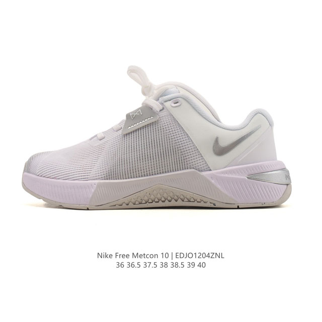 Company-grade Nike Metcon 10 Women's Indoor Fitness Shoes, Low-top, Thin-soled, Fitness Shoes Hj1875. Featuring a robust Hyperlift outsole in the crucial area below the heel, these shoes effectively enhance stability during weightlifting, aiding in movements like squats, deadlifts, and clean and jerk, while providing a free-moving experience. Compared to the Metcon 9, the wider toe box allows for greater toe extension, facilitating more effective power delivery from the entire foot. A revolutionary midsole design, combined with lightweight Reactx foam, enhances energy return. The outsole incorporates flex grooves for flexible, responsive cushioning during high-intensity training such as box jumps and sprints. High-wear areas like the midfoot and toe incorporate a durable, tacky texture, meticulously arranged for exceptional grip and durability. A novel traction pattern creates a smooth, sticky surface, allowing you to easily conquer wet surfaces. The midfoot strap design securely positions your feet on the insole by lacing them in. Combined with a robust heel counter and lace-up storage, it helps you focus on adjusting your posture and prevents shifting or slipping. The perforated mesh design provides excellent breathability, while the precise and lightweight rubber midsole offers superior performance compared to the Metcon 9's sturdy plastic heel clip, ensuring durability and even assisting with handstand push-ups. Sizes: 36-40 (including half sizes). Code: Edjo1204Znl