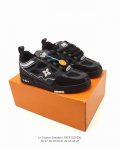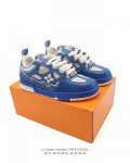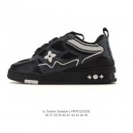 Lv Skate Sneaker, Louis Vuitton's new 2025 limited-edition Spring/Summer sneaker, debuted on the runway and presented in a refreshed version with grained calfskin leather. The padded collar and tongue draw inspiration from skateboarding shoes, while technical laces and a rubber outsole complete the look. The upper is made of grained calfskin leather, the outsole is rubber, and the tongue and heel of the sole are adorned with the Lv logo. Sizes: 36-45 Code: Frfr1225