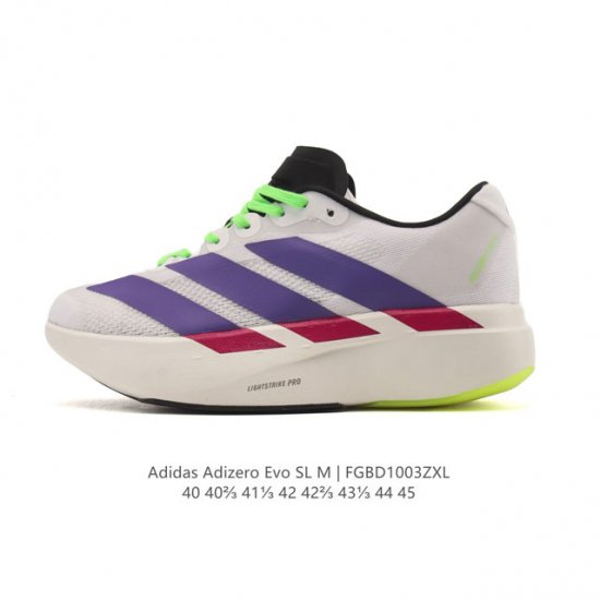 Adidas Adizero Evo Sl Sport Comfortable Anti-slip Wear-resistant Low-top Running Shoes with Built-in Carbon Fiber Plate. Adidas' innovative masterpiece, the record-breaking lightweight running shoe Adizero Adios Pro Evo features an ultra-lightweight Upper design, providing a near-barefoot comfort experience. The midsole utilizes cutting-edge technology, with meticulously tuned Lightstrike Pro material achieving a perfect combination of superior cushioning and lightweight design. #FusionOfTechnologyAndFashion #Adidas #TreasureShoesAdidas #OnlyShoesToday #NewShoeExperienceOfficer #ThoseYears, ThoseShoes #AutumnChangeFirstShoes. Type: Men's Shoes Item Number: Js4496 Size: 40-45 (including half sizes) Code: Fgbd 3