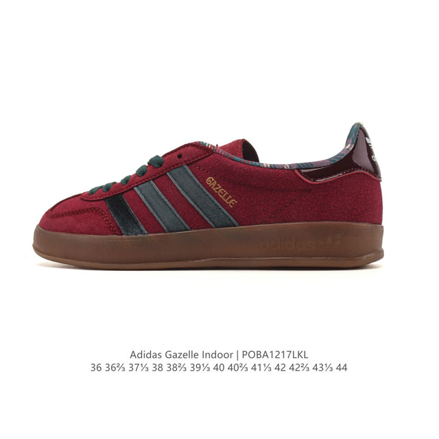 Adidas Originals Gazelle Indoor Retro Trefoil Transparent Rubber Sneaker - A classic athletic shoe. This classic shoe stays true to the original design, featuring contrasting three stripes and a heel panel. It boasts a soft leather upper for comfort, paired with a gum rubber outsole for a retro style. Made with different materials, this slender, retro tennis shoe has been popular since the 1970s. The Gazelle Indoor features a wider T-shaped toe box, marking Gazelle's introduction of leather into training shoe designs to reduce the burden on athletes' feet. This change was also intended to better protect the athlete's forefoot, and the Gucci X Adidas Gazelle collection is based on this shoe model. Features include a regular-cut lace-up design, leather upper with fabric lining, a comfortable gum rubber outsole, and an Ortholite insole for a comfortable feel. DDD Sizes: 36-44 (including half sizes) DDD Product Code: Ig6786 DDD Code: poba1217Lkl DDD