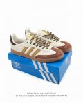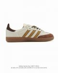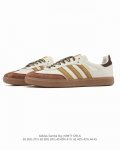 Adidas Originals Samba Og Shoes - Classic white sneakers, T-toe shoes for men and women, showcasing a casual and modern style. Born on the football field in the 1950s, it later spread to the streets and runways. The Adidas Samba stands alone, a fashion icon. This classic Samba Og shoe features a soft leather upper and a rubber outsole for comfort and casual wear. It pays homage to the Samba's traditional design with its serrated three stripes and distinctive T-toe. Subtle gold foil details add a touch of style. Staying true to its roots, its passion never fades. Regular fit, lace-up design, leather upper, fabric lining, rubber outsole. Product Code: Ki8887 Sizes: 36-45 (including half sizes) Code: Kimt1129Ljl