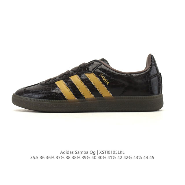 Adidas Originals Samba Og Shoes - Classic white sneakers, T-toe shoes for men and women, showcasing a casual and modern style. Born on the football field in the 1950s, it later spread to the streets and runways. The Adidas Samba stands out as a fashion icon. This classic Samba Og shoe features a leather upper and rubber outsole for comfort and casual wear. It pays homage to the Samba's traditional design with its serrated three stripes and distinctive T-toe. Subtle gold foil details add a touch of style. Staying true to its roots, its passion never fades. Regular fit, lace-up design, leather upper, fabric lining, rubber outsole. Type: Men's and Women's Shoes Product Code: Jq5976 Sizes: 35.5-45 (including half sizes) Code: Xsti0105Lkl