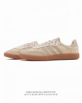 Adidas Originals Samba Og Shoes, classic white sneakers, T-toe shoes for men and women, showcasing a casual and modern style. Born on the football field in the 1950s, it later spread to the streets and runways. The Adidas Samba stands out as a fashion icon. This classic Samba Og shoe features a soft leather upper and a rubber outsole for comfort and casual wear. It pays homage to the Samba's traditional design with its serrated three stripes and distinctive T-toe. Subtle gold foil details add a touch of style. Staying true to its roots, the passion never fades. Regular fit, lace-up design, leather upper, fabric lining, rubber outsole. Product Code: Jr9446 Sizes: 36-45 Code: Samt1017Zll