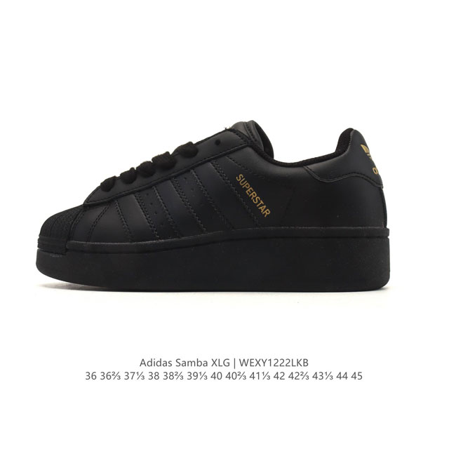 Adidas Originals Superstar Xlg Shell Toe Low-Top Platform Classic Casual Sneakers. When you try to define the Adidas Superstar series, there's always a bold design that breaks through your imagination. This shoe is based on classic 70s sneakers, freshly infused with modern fashion elements. The oversized design, paired with serrated three stripes, exudes personality and style