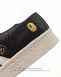 Adidas Sstr V Bape 2025 New Shoes, Year of the Snake New Classic Shell Toe Series New Casual Sneakers, Trendy Men's and Women's Sports Shoes. The Adidas Sstr V shoe, a collaboration between Adidas and Bape, is the core product of their joint series. Based on the classic Superstar silhouette, this shoe incorporates Bape's iconic style. The upper features an ABC Solid Camo embossed design with an asymmetrical aesthetic, displaying Adidas' three stripes on one side and Bape's star logo on the other. Details include a gold foil Ape Head and gold metal lace buckles. The collaboration also includes various colorways, with adult versions available in black and white and blue and white, while the children's version features a classic black and white color scheme. Unique details include a gold foil Ape Head logo on the side and metal buckles. The series also includes matching accessories such as tracksuits, hats, crossbody bags, and socks. Product Code: Jr2702 Sizes: 36-45 (including half sizes) Code: Q