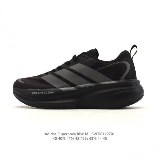 Adidas Supernova Rise 3 Shoes - Slip-resistant, durable, and comfortable running shoes. Midsole technology: Utilizes Dreamstrike+ supercritical foam material reconstructed from Peba base material, combining cushioning and rebound. Support system: Density gradient support bar design optimizes gait transition stability. Waterproof version: GTX model features a Gore-Tex invisible waterproof membrane, suitable for rainy conditions. Last design: Standard width last with comfortable heel lockdown; some users have reported that the lacing system's fit needs improvement in the regular version. Suitable scenarios: Optimal cushioning for 5-minute pace jogging; forefoot slippage occurs below 4.5-minute pace. Durability: Continental rubber outsole demonstrates good durability in multi-terrain testing. Type: Men's shoes. Product code: Jr9605. Sizes: 40-45 (including half sizes). Code: Swti0112.