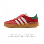 Adidas T-Toe Shoe Series Bad Bunny X Adidas Gazelle Indoor German Training Sneakers. Bad Bunny and Adidas have collaborated again to release the new Gazelleindoor shoe. This shoe features a unique design with a tilted toe and deconstructed style, crafted from premium materials. The shoe is wider and thicker, suitable for those with wider feet, and the thicker insole enhances comfort. The most eye-catching feature is the tilted toe design, a bold alteration to the upper construction, consistent with the original dissolving shoe design. Stitching on the tongue and an exposed heel tab inject deconstructed design elements, enhancing the shoe's style and recognizability. The upper is made of premium white leather mixed with beige suede, while high-gloss black leather accents the side stripes and tongue. It features thick, rope-like laces and a semi-transparent gum rubber outsole, achieving a perfectly balanced premium feel. Product Code: Js5053 Sizes: 36-45 (including half sizes) Code: Imbl1025Lkb