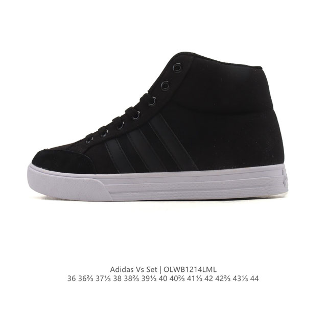 Adidas Vs Set Men's High-Top Anti-Skateboard Shoes, Casual Basketball Shoes with a Retro Style. This mid-top sneaker is designed to accompany you in a comfortable and casual lifestyle. The upper features three stripes, showcasing a retro feel. Features include a lace-up design, leather canvas upper, toe cap with three stripes, mid-top sneaker, and a full-coverage rubber outsole. Product Code: 668376 Sizes: 36-44 (including half sizes) Code: Olwb1214Lml