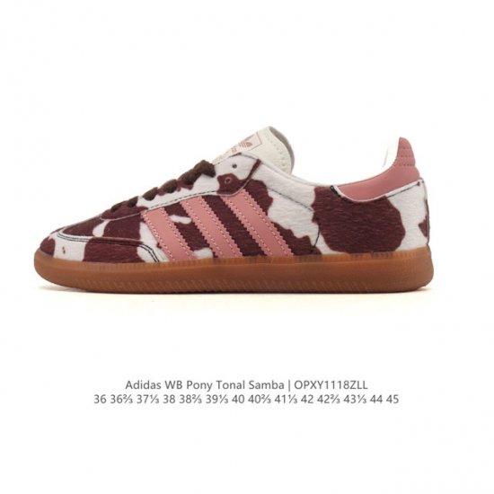 Adidas Wb pony Tonal Samba Cow Spot Print Plush Sneakers - A retro must-have combining classic Trefoil and German Training sneakers. The 2025 release marks the year of the Adidas Samba. The Samba series' explosive popularity is attributed to the Blokecore style driven by last year's Qatar World Cup. This football-themed fashion trend has brought retro sportswear back into the public eye. Classic jerseys, vintage jackets, and sneakers have once again become favorites among young enthusiasts. Top celebrities like Bella Hadid, A.P. Rocky, Kendall Jenner, and Pharrell Williams have all been seen wearing them, perfectly complementing streetwear, minimalist styles, and edgy looks. Type: Men's/Women's Shoes Product Code: Jr1256 Sizes: 36-45 (including half sizes) Code: Opxy1118Zll