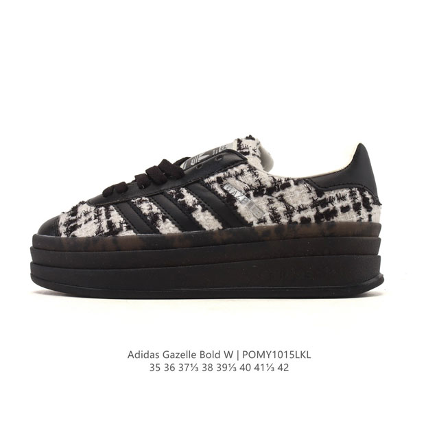 Authentic Adidas 2025 New Year Shoes, Adidas Originals Gazelle Bold Retro Style Platform Sneakers. The Adidas Gazelle is a timelessly popular shoe model, featuring a three-layer thick sole design. The stacked design is not only ingenious but also creates a more distinct sense of layering. The platform sole adds at least 3 centimeters to your leg length, no exaggeration. The upper is made entirely of suede leather, exuding a low-key luxurious retro trend. The color scheme is classic and easy to match, ensuring it won't go out of style even after five years. It's versatile enough to change your style every day . Product Code: Jq0955 Sizes: 35-42 ID: Pomy1015Lkl