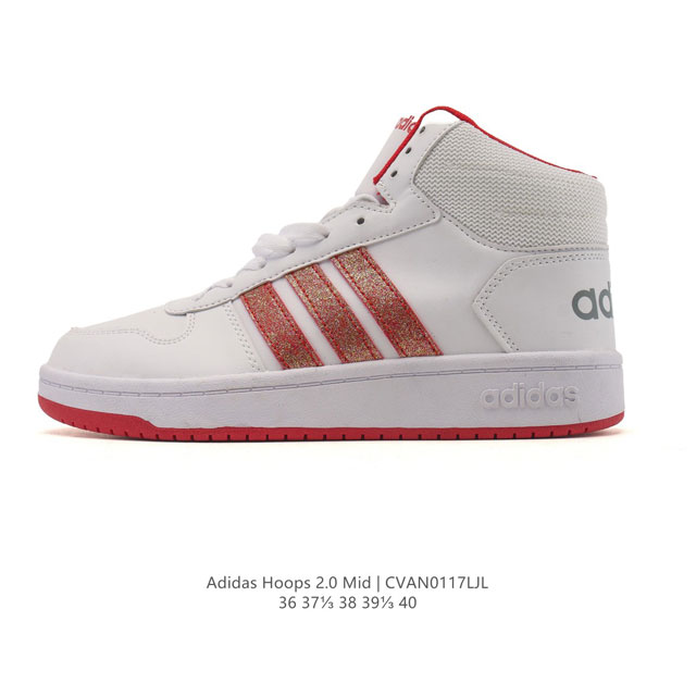 Authentic Adidas women's sneakers, made with premium coated cowhide leather, featuring an exposed lightweight EVA midsole insert. Adidas Originals Hoops 2.0 Mid Roman series mid-top retro lace-up versatile casual sneakers. Type: Women's Shoes Sizes: 36-40 Code: Cvan0117Ljl