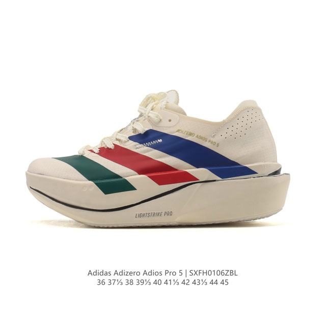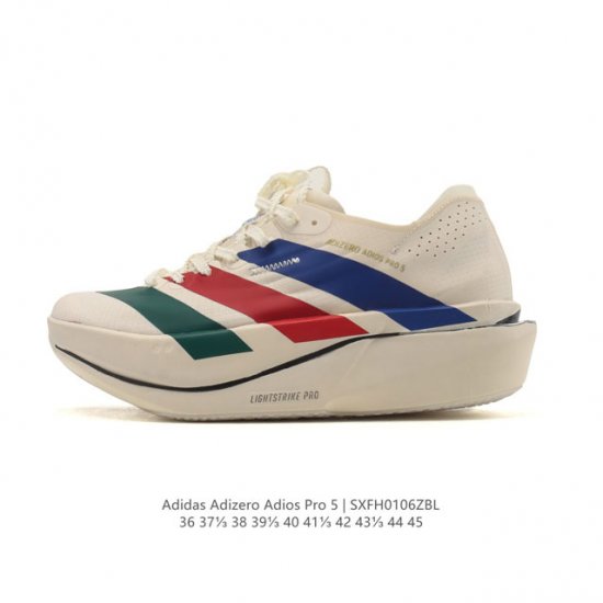 Company-grade Adidas Adizeroadios Pro 5 Ultralight Marathon Carbon Column Professional Racing Shoes. The Adidas Adizero Adios Pro 5 is Adidas' professional marathon racing shoe, the latest product in the Adizero series. According to currently available information, the Pro 5 features significant upgrades over its predecessor, employing a dual propulsion system design with a carbon column and carbon plate. Reports also suggest the use of a ring-shaped carbon plate, resulting in substantial changes in style and performance, aiming to provide runners with stronger energy return and propulsion, enhancing racing performance. Product Code: K18667 Sizes: 36-45 Code: Sxfh0106Zbl