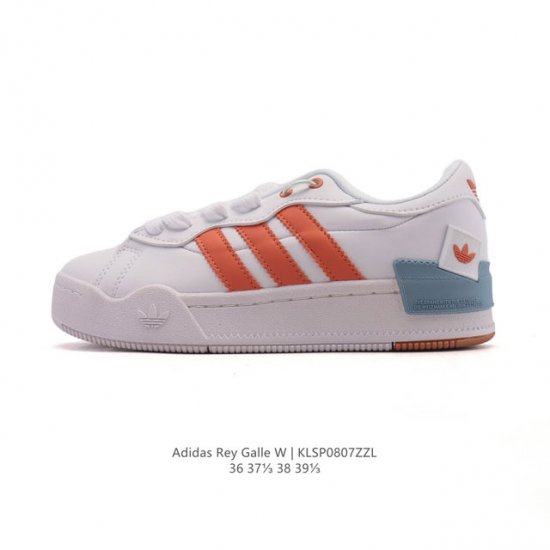 New arrival: Adidas Rey Galle W Classic Women's Sneakers. Unisex Originals Rey Galle Shoes. Thick-soled, elevated white sneakers. These classic Rey Galle shoes, adorned with serrated three-stripe details, offer a trendy take on a classic, showcasing Adidas DNA. Translucent details and multiple Trefoil logos add a touch of style. Crafted from recycled materials to reduce plastic waste, these shoes feature a lace-up design, a synthetic upper, and a rubber outsole. Item No.: Gy4128