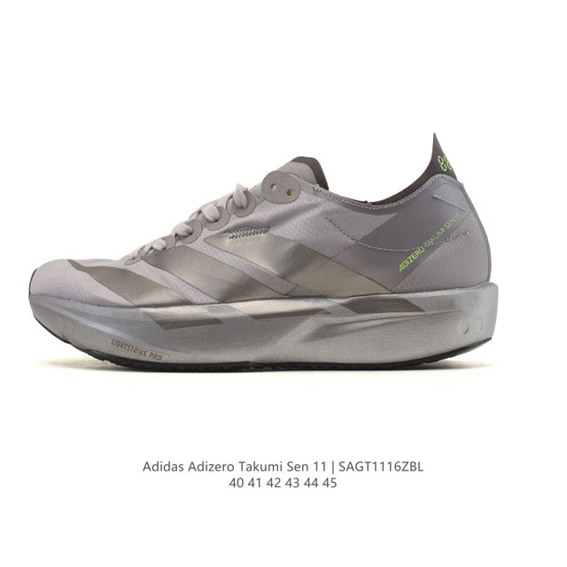 New Product: Adidas Adizero Takumi Sen 11 - Comfortable, Stylish, Casual, Versatile, Thick-Soled, Height-Increasing, Cushioning, Low-Top Running Shoes. The Adizero Takumi Sen 11 features innovative Lightlock technology in its upper, offering a superior fit and support compared to the Takumi Sen 10. Compared to its sibling, the Adios pro Evo 2, it boasts optimized upper materials, achieving both lightweight design and stability. The laces and tongue design have also been reconsidered, with reinforced eyelets from the upper to the collar effectively reducing pressure on the foot at the top of the upper when seeking ultimate lockdown. While the ankle padding is similar to its predecessor, these improvements effectively prevent potential heel slippage and friction issues. Midsole performance upgrade: Lightstrike pro cushioning foam + Eneryrods 2.0 system with glass fiber. Revolutionary Outsole: An innovative change to the Light Traxion outsole. Heel Details: A unique design logo conveying the spirit of competition. #FirstShoesOfAutumn #RunningShoeReport #NewRunningShoesReport #BackToSchool #WhichFootWillStepInFirstForSchoolSize: 40-45 Code: Sagt1116Zbl