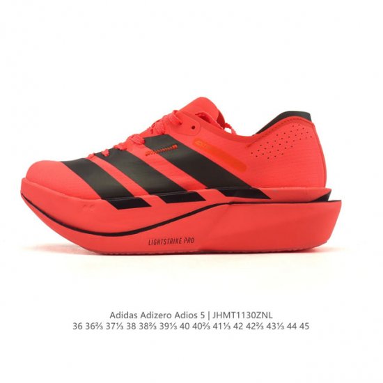 New Product: Adidas Adizeroadios Pro 5 Ultralight Marathon Carbon Column Professional Racing Shoes (Company Grade). The Adidas Adizero Adios Pro 5 is Adidas' professional marathon racing shoe, the latest product in the Adizero series. According to currently available information, the Pro 5 features significant upgrades over its predecessor, employing a dual propulsion system design with a carbon column and carbon plate. Reports also suggest the use of a ring-shaped carbon plate, resulting in significant changes in style and performance, aiming to provide runners with stronger energy return and propulsion, enhancing racing performance. Product Code: K18295 Sizes: 36-45 (including half sizes) Code: Jhmt1130Znl