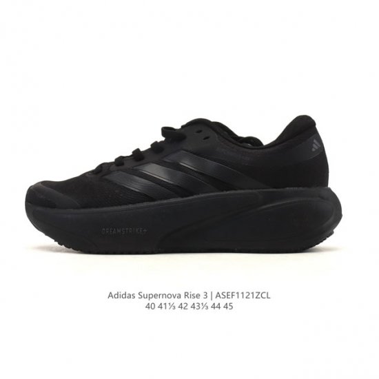 New Product: Company Grade Adidas Supernova Rise 3 Shoes - Anti-slip, Wear-resistant, Comfortable Running Shoes. Midsole Technology: Dreamstrike+ supercritical foam material reconstructed from PEBA base material, combining cushioning and rebound. Support System: Density gradient support bar design optimizes gait transition stability. Waterproof Version: GTX model equipped with Gore-Tex invisible waterproof membrane, suitable for rainy conditions. Last Design: Standard width last with comfortable heel lock-up; some users have reported that the lacing system of the regular version needs improvement in terms of fit. Suitable Scenarios: Optimal cushioning for 5-minute pace jogging; forefoot slippage occurs below 4.5-minute pace. Durability: Continental rubber outsole demonstrates good wear resistance in multi-terrain testing. Type: Men's/Women's Shoes. Product Code: Jr7372. Sizes: 36-45. Code: Asef1121Zcl.
