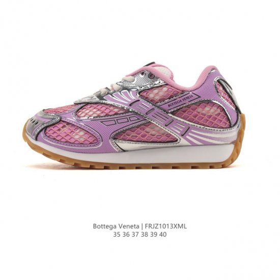 Company Grade Bottega Veneta 2025 Spring/Summer Collection Men's and Women's Orbit Sneakers. Bottega Veneta is an Italian luxury brand, using traditional leather and fabric splicing techniques. These Runner sneakers feature a lightweight technical canvas upper and a geometric patterned rubber outsole. Technical fabric lace-up design. Lining: Technical fabric. Rubber outsole. Suggested size: Run one size large. Made in Italy. Sizes: 35-40. Code: Frjz1013Xml.