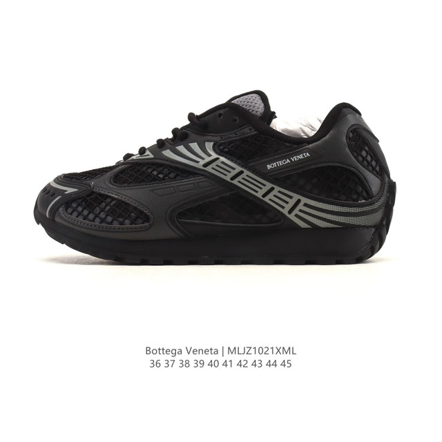 Company Grade Bottega Veneta 2025 Spring/Summer Collection Men's and Women's Orbit Sneakers. Bottega Veneta is an Italian luxury brand, using traditional leather and fabric splicing techniques. These Runner sneakers feature a lightweight technical canvas upper and a geometric patterned rubber outsole. Technical fabric lace-up design. Lining: Technical fabric. Rubber outsole. Suggested size: Run one size large. Made in Italy. Sizes: 36-45. Code: Mljz1021Xml.