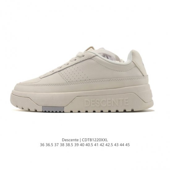New Product: Descente Cron Racer Casual Sneakers, unisex white sneakers. The Descente Cron Racer series is a multi-scenario casual shoe that blends minimalist Japanese design with functional technology. Key features include: 1. Core Functions and Technology: All-weather anti-slip outsole: Suitable for urban commuting, rainy days, etc. EVA cushioning layer + TPU anti-torsion plate: Reduces foot fatigue after light exercise such as cycling and camping. Easy-care materials: A combination of cowhide and suede upper for easy cleaning, stain-resistant design, and antibacterial insole, suitable for students, mothers, and other frequent users. 2. Design Style and Styling: Japanese retro running shoe style: Matte leather and suede materials highlight the City Boy style. Slim summer design: Fabric-like construction without sponge padding, suitable for hot weather. Suitable for: Light outdoor hiking, urban sports. The sole pattern design enhances terrain adaptability. Simple yet versatile, it's easy to wear for commuting or sports. A must-have in your wardrobe! The streamlined design of this white sneaker is flattering and slimming, matching any outfit effortlessly for a stylish look! Sizes: 36-45 (including half sizes) Code: Cdtb1220