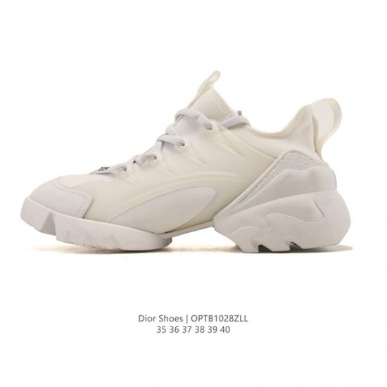 Dior unisex chunky running shoes, D-Connect, neoprene, platform-exclusive, height-increasing sneakers. Official 2019S/street runway style featuring transparent rubber inlays, high-elasticity breathable knit upper, and laces adorned with the "Dior" logo on the fully enclosed rubber sole. The sole features Christian Dior's iconic star symbol and multi-material construction. Comes with original packaging and a tote bag. Sizes: 35-40. Code: Optb1028Zll.