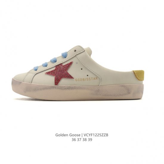Golden Goose Deluxe Brand Sstar, an Italian Ggdb distressed sneaker, a trendy retro-style slip-on casual sandal. Featured in various drama stills by Song Joong-ki, this is a versatile everyday shoe. Made of genuine Italian imported lambskin with a handcrafted distressed finish, the inner lining and insole are also wrapped in lambskin, providing an excellent wearing experience. It's versatile and easy to wear from any angle. The Ggdb distressed sneakers are a retro-style distressed shoe. Handcrafted by Golden Goose (#Ggdb#), each pair is unique and distinctive. Loved by trendsetters, celebrities, influencers, and online personalities, these shoes are incredibly versatile and look great on. Sizes: 36-39. Code: Vcyf1225Zzb