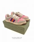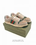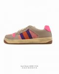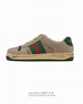 Gucci Screener series distressed sneakers for men and women, featuring a stylish platform sole, height-increasing retro design, and trendy athletic shoes. The retro preppy style and fabrics incorporating vintage sportswear aesthetics have been popular for decades, creating a harmonious symphony of different styles that provides rich inspiration for the early spring collection. This sneaker is inspired by classic 70s sneakers, featuring a monogrammed side panel, a specially treated vintage Gucci logo, and an overall distressed effect. It boasts retro-style nylon webbing, canvas details, a terry cloth lining, a thick sole with a special treatment to create a vintage distressed effect, and is adorned with metallic double-G oval enamel details. The tag features a vintage Gucci logo, and the thick, two-tone sole provides a noticeable height boost. Made in Italy! Type: Men's and Women's Shoes Sizes: 35-44 Code: Xzob1117Lkl