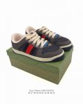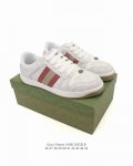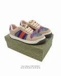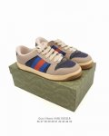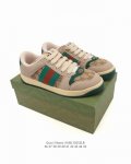 Gucci Screener series distressed sneakers for men and women, featuring a stylish platform sole, height-increasing retro design. The retro preppy style and fabrics incorporating vintage sportswear aesthetics have been popular for decades, creating a harmonious blend of different styles that provides rich inspiration for the early spring collection. This sneaker is inspired by classic 70s sneakers, featuring a monogrammed side panel and a specially treated vintage Gucci logo for an overall distressed effect. It boasts retro-style nylon webbing, canvas details, a terry cloth lining, a thick sole with a special treatment to create a vintage distressed look, and is adorned with a metallic double-G oval enamel detail. The tag features a vintage Gucci logo, and the thick, two-tone sole provides a noticeable height boost. Made in Italy! Type: Men's and Women's Shoes Sizes: 36-45 Code: Hjbl1025Zlb