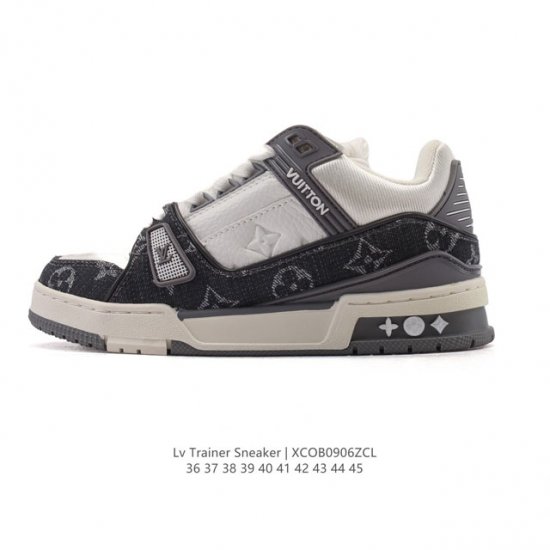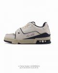 Louis Vuitton LV Louis Vuitton sneakers, fashionable sneakers with trendy thick soles and height-enhancing shoes for men and women. Their comfortable, non-slip sole and versatile design have taken the fashion and entertainment world by storm, with meticulous attention to detail and perfectionism. Featuring a soft leather upper, an exclusive molded outsole, and a 3D-printed signature logo on the side, they exude a touch of aristocratic chic. Comes with authentic packaging. Brand new LV Louis Vuitton Trainer Sneaker Low, a versatile casual sneaker for athletic wear.