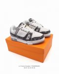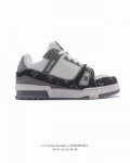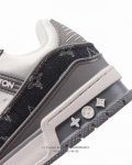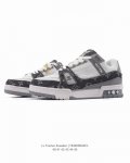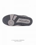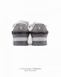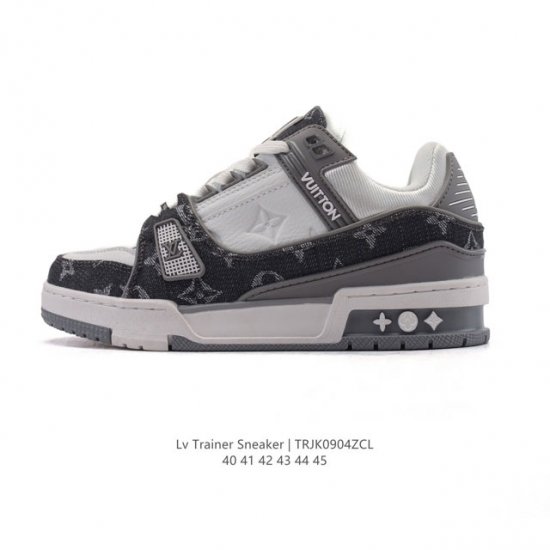 LV Skate Sneaker, Louis Vuitton's new 2025 sneaker, debuted at the Spring/Summer 2025 runway show for the Year of the Snake, now presented in a new look in grained calfskin leather. The padded collar and tongue reference skateboarding, while technical laces and a rubber outsole complete the look. The upper features a grained calfskin and mesh paneling, a rubber outsole, and LV logos on the tongue and back of the sole.