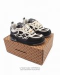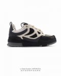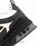 The Louis Vuitton LV Skate Sneaker, a new sneaker from Louis Vuitton, debuted at the Spring/Summer 2025 runway show for the Year of the Snake. This time, it's updated with grained cowhide leather. The padded collar and tongue reference skateboarding, while technical laces and a rubber outsole complete the look. The upper features a grained cowhide leather and mesh paneling, a rubber outsole, and LV logos on the tongue and back of the sole.