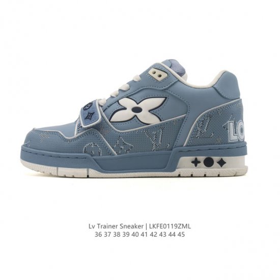 Company-grade Louis Vuitton Trainer Sneaker Low, a fashionable and stylish platform sneaker for men and women. Comfortable, non-slip sole and versatile design make it a staple in the fashion world. Perfected details! Features a soft leather upper, an exclusive molded outsole, and a 3D-printed iconic logo on the side, exuding aristocratic style. Comes with authentic packaging. New Louis Vuitton Trainer Sneaker Low, a versatile casual sports shoe. Type: Men's/Women's Shoes Sizes: 36-45 Code: Lkfe0119Zml
