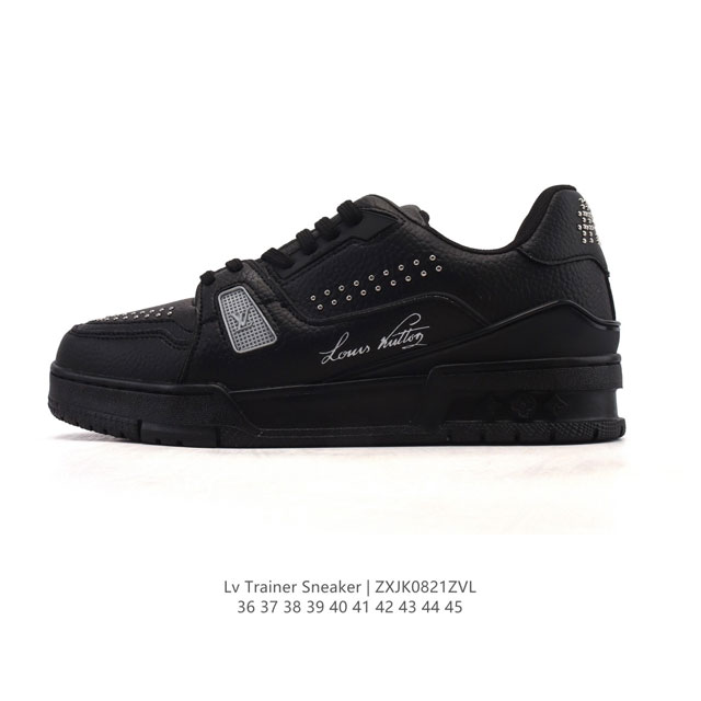 Corporate-grade Louis Vuitton LV Louis Vuitton sneakers, fashionable sneakers with trendy thick soles and height-enhancing shoes for men and women. Their comfortable, non-slip sole and versatile design have taken the fashion and entertainment world by storm, with meticulous attention to detail and perfectionism! Featuring a soft leather upper, an exclusive molded outsole, and a 3D-printed signature logo on the side, they exude a refined, fashionable vibe. Comes with authentic packaging. Brand new LV Louis Vuitton Trainer Sneaker Low, a versatile casual sneaker for athletic wear.